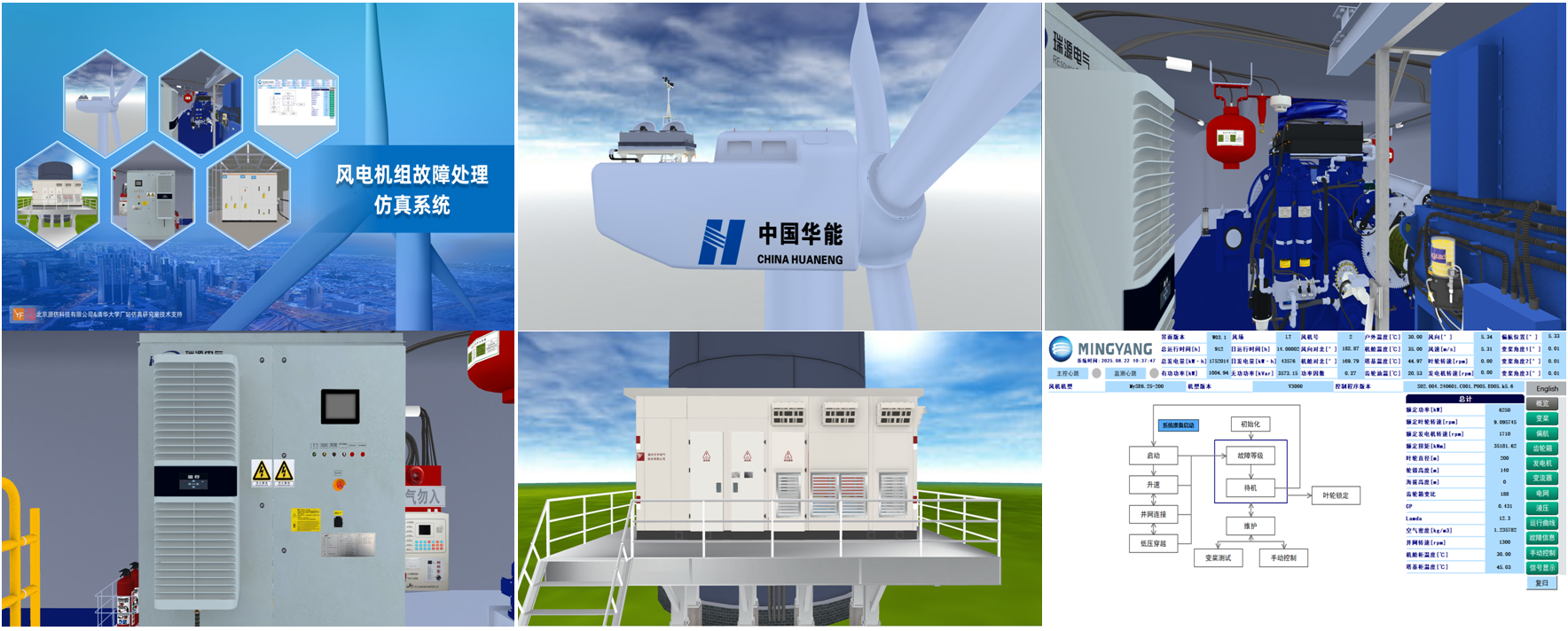 根据风力发电运行值班员国赛指定6.25MW风力发电机组原型,进行1:1详细仿真,建立一套故障处理维护并带有考核功能的机组故障处理仿真系统,仿真系统的数学模型应符合物理学、数学和新能源电力科学的基本定律,能完整、严格、精确地对风力发电机组全流程作业进行过程仿真。该仿真系统满足风电机组故障处理国赛竞赛的要求。