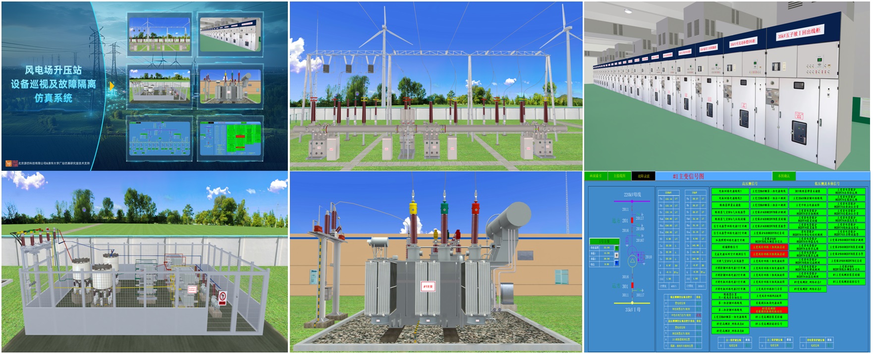 根据风力发电运行值班员国赛指定的某风电场升压站220kV/35kV为仿真原型,进行1:1详细仿真,建立一套集升压站五防机仿真、升压站及周边电网模型仿真、继电保护装置及其他二次设备仿真、监控系统仿真、升压站实景三维仿真为一体的全范围的升压站仿真系统,旨在全方位地培训学员的正常操作、巡视、故障和事故处理、一般性的保护调试等升压站运行与维护等技能,并带有考核功能,使仿真机集培训、考核、技能鉴定等功能于一体。